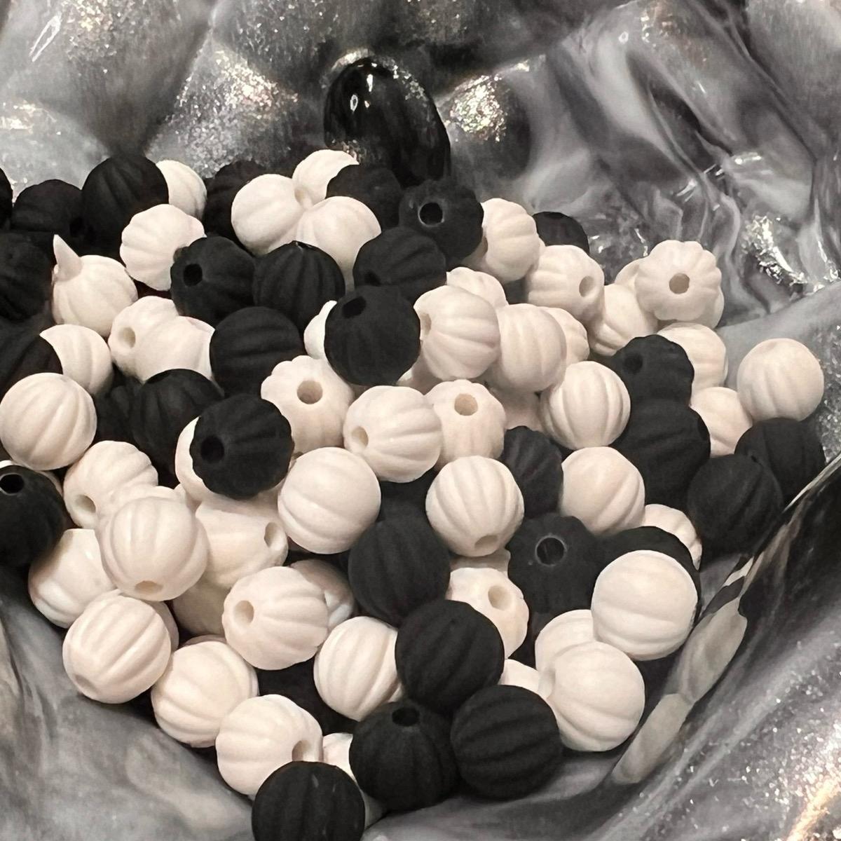 (BP198) 20 x 8mm Black white pumpkin beads