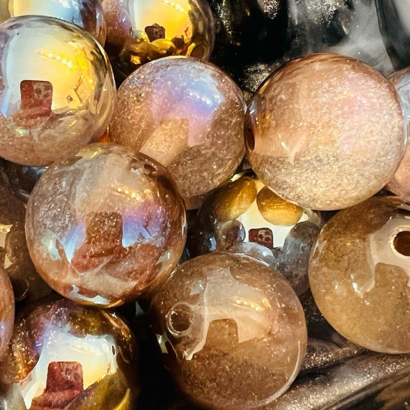 (BP344) 5 x 16mm smokey grey glitter Beads