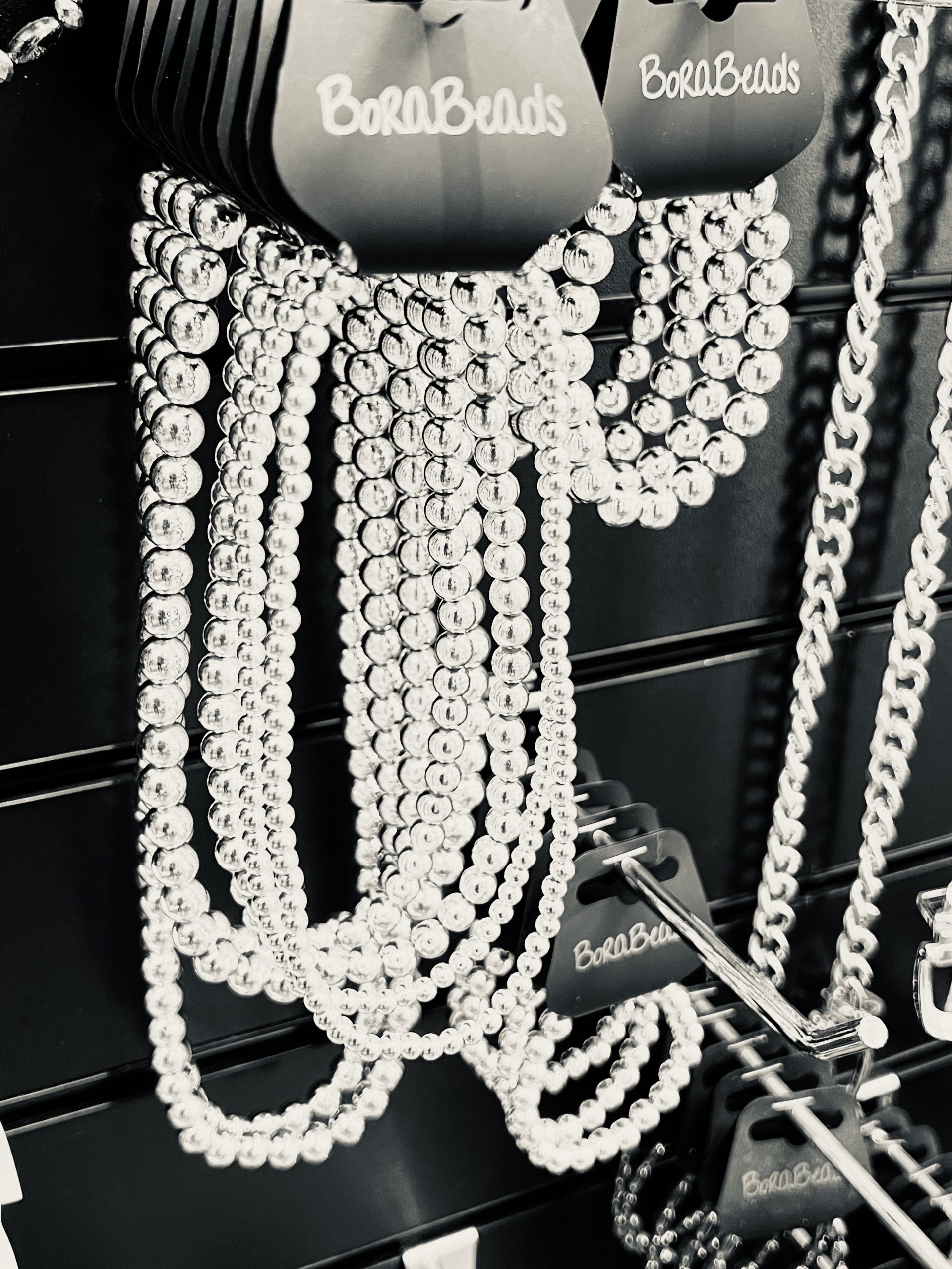 Platinum coloured elasticated bead necklace
